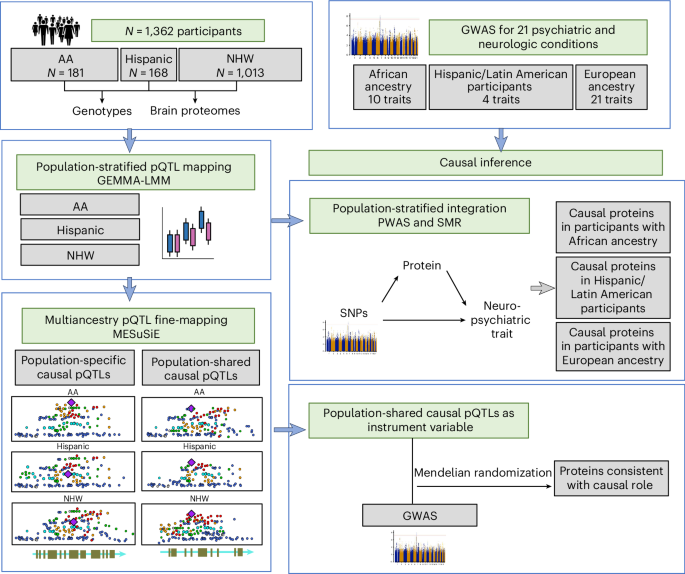 이 논문은 multiancestry brain pQTL(단백질 발현 관련 유전 변이) 분석을 통해 ancestry 간 차이점과 공통점을 체계적으로 살펴봤습니다. 주요 요약은 다음과 같습니다: