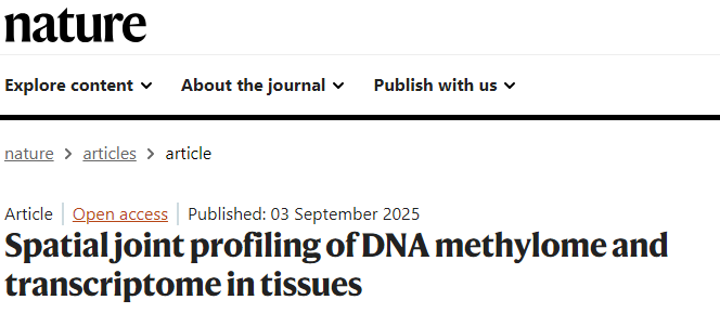The spatial resolution of omics analyses is fundamental to understanding tissue biology1,2,3. The capacity to spatially profile DNA methylation, which is a canonical epigenetic mark extensively implicated in transcriptional regulation4,5, is lacking. Here we introduce a method for whole-genome spatial co-profiling of DNA methylation and the transcriptome of the same tissue section at near single-cell resolution. Applying this technology to mouse embryogenesis and the postnatal mouse brain resulted in rich DNA–RNA bimodal tissue maps. These maps revealed the spatial context of known methylation biology and its interplay with gene expression. The concordance and distinction in spatial patterns of the two modalities highlighted a synergistic molecular definition of cell identity in spatial programming of mammalian development and brain function. By integrating spatial maps of mouse embryos at two different developmental stages, we reconstructed the dynamics that underlie mammalian embryogenesis for both the epigenome and transcriptome, revealing details of sequence-, cell-type- and region-specific methylation-mediated transcriptional regulation. This method extends the scope of spatial omics to include DNA cytosine methylation, enabling a more comprehensive understanding of tissue biology across development and disease.